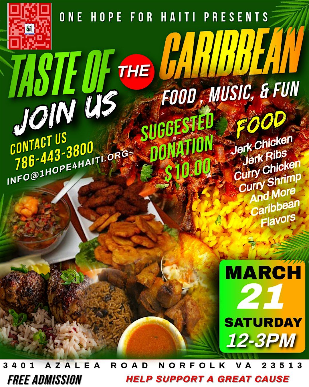 Come join us in person for a vibrant celebration full of delicious Caribbean flavors! It’s the perfect chance to chill, eat, and soak up some island vibes with friends and family. Don't miss out on this fun and tasty experience that brings the heart of the Caribbean right to you. See you there!