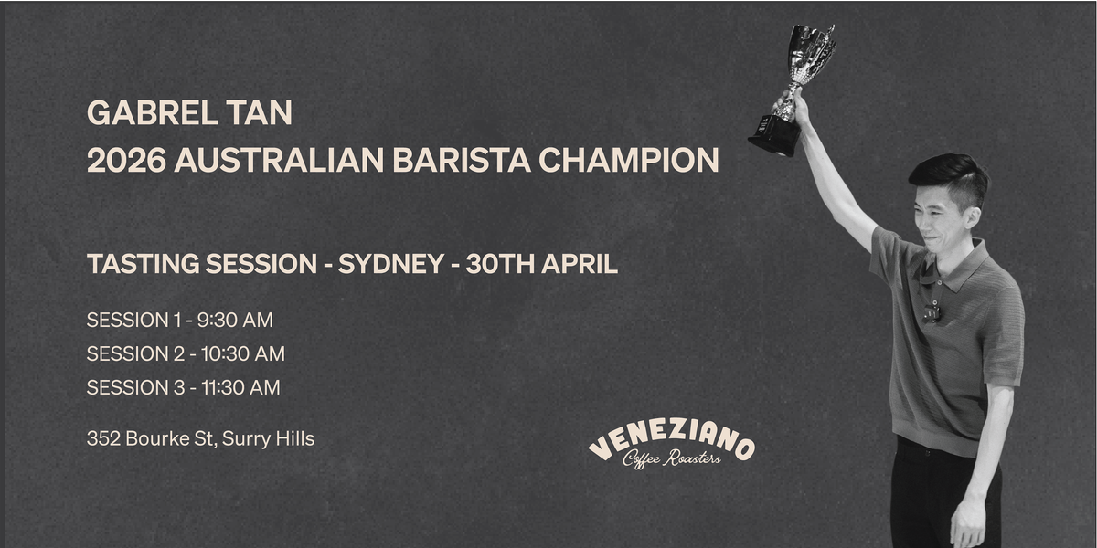 Join us for an intimate 30-minute tasting session where Gab shares the story behind his championship concept, his coffee choices, and the journey that led to the win. Plus, Q&A - ask him just about anything. His technique, his process and what he has planned next.