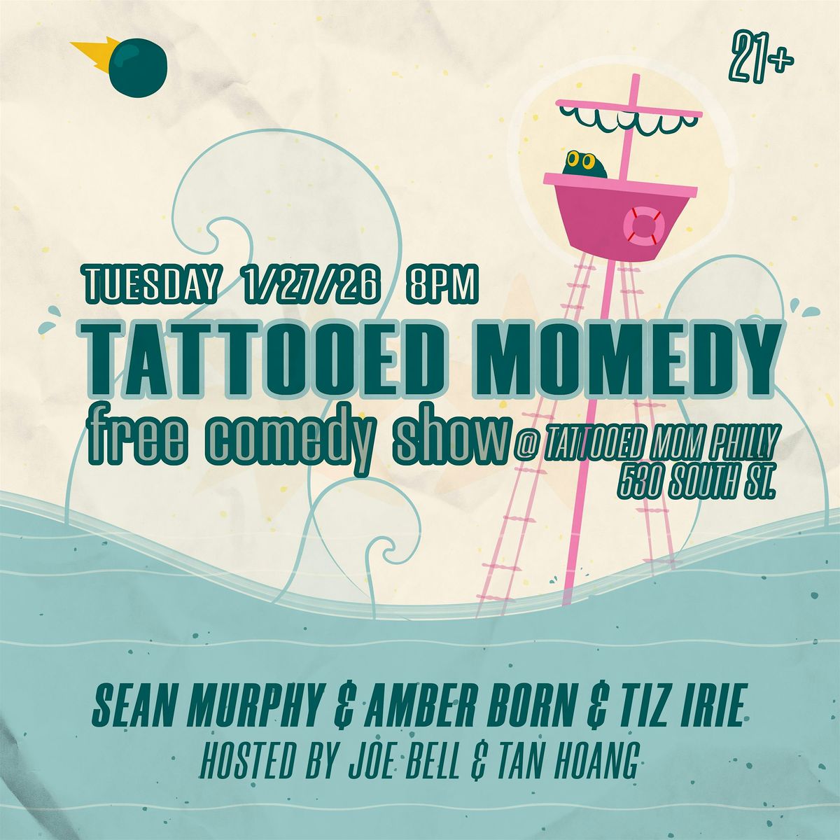 Tattooed Momedy is a free comedy show the LAST TUESDAY OF EVERY MONTH exclusively at TATTOOED MOM!