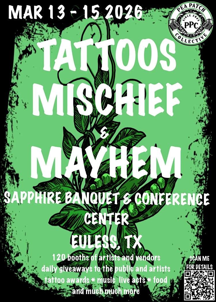 Join us March 13 - 15 for 120 booths of artists and vendors, daily giveaways to the public and artists, tattoo awards, music, live acts, food, kids activity center, a car and 2 grills giveaways, and so much more.