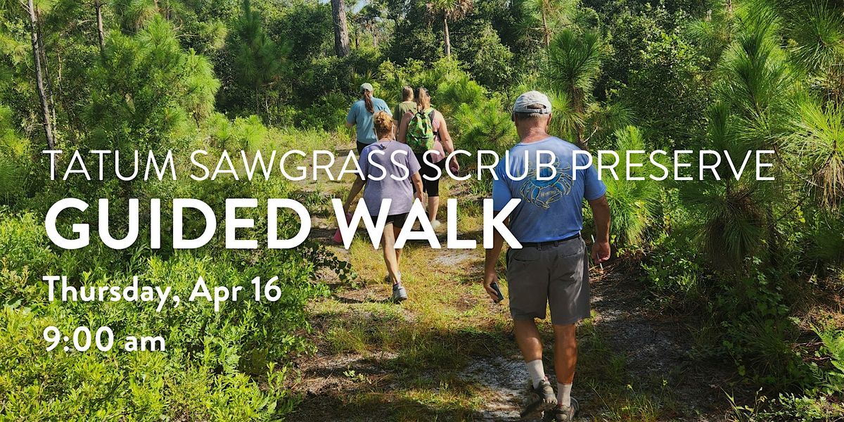 Join us for a naturalist-guided tour of Big Waters Land Trust's Tatum Sawgrass Scrub Preserve. Along the way, participants will learn about the plants and animals that call this place home and the importance of protecting natural areas along the Myakka River. This unique property, only open to the public during special events and guided tours, is connected to the 2,500-acre Tatum Sawgrass marsh, the largest floodplain marsh along the Myakka River. The property consists of scrub, oak hammock, and floodplain marsh, which support imperiled species such as the gopher tortoise, eastern indigo snake, eastern spotted skunk, and wading birds like the American wood stork.