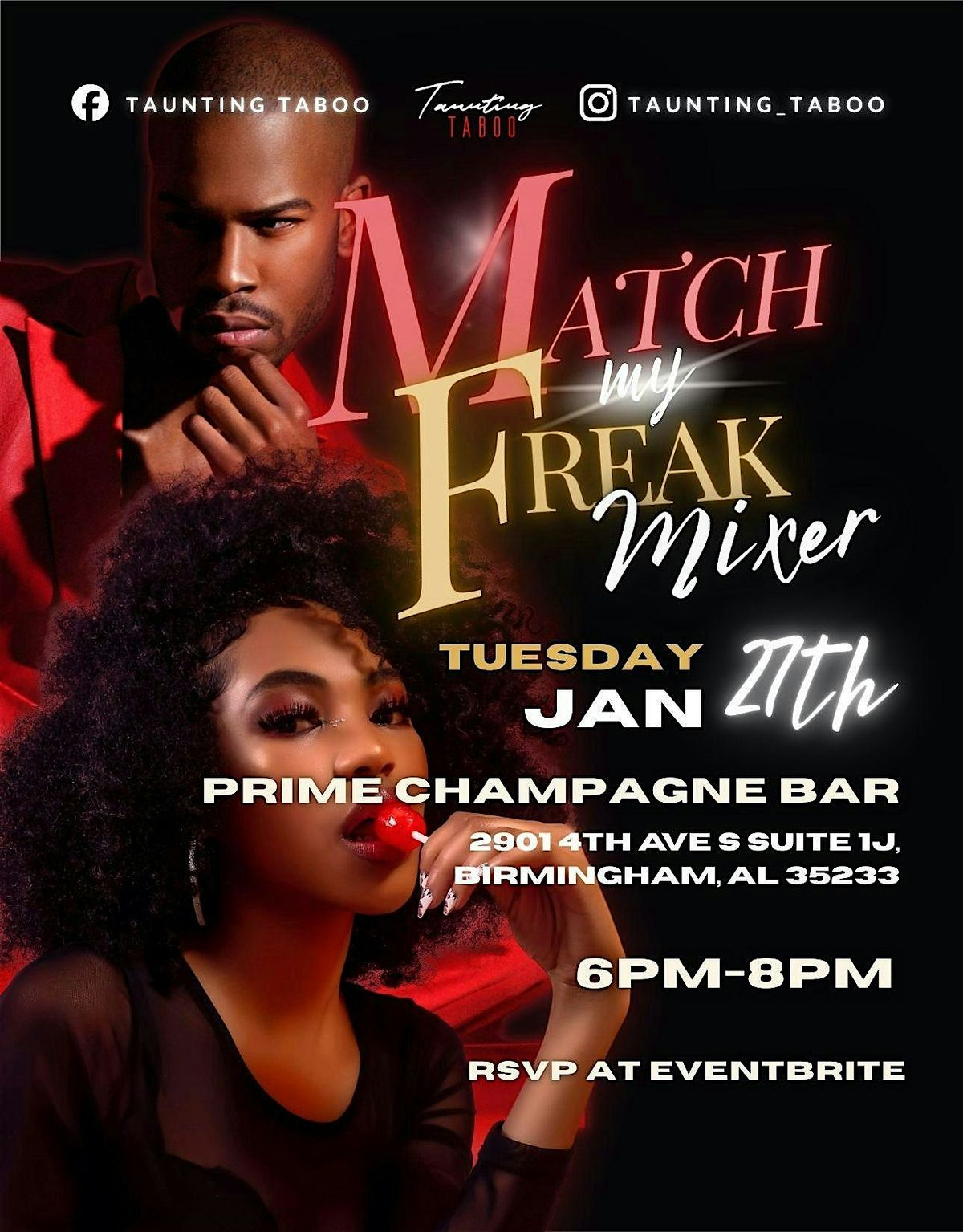 It's almost cuffing season so, OF COURSE Taunting Taboo is playing match maker for this month’s Taboo Tuesday! Join us for Match My Freak, a bold twist on your typical mixer where sparks fly beyond small talk and surface-level icebreakers.