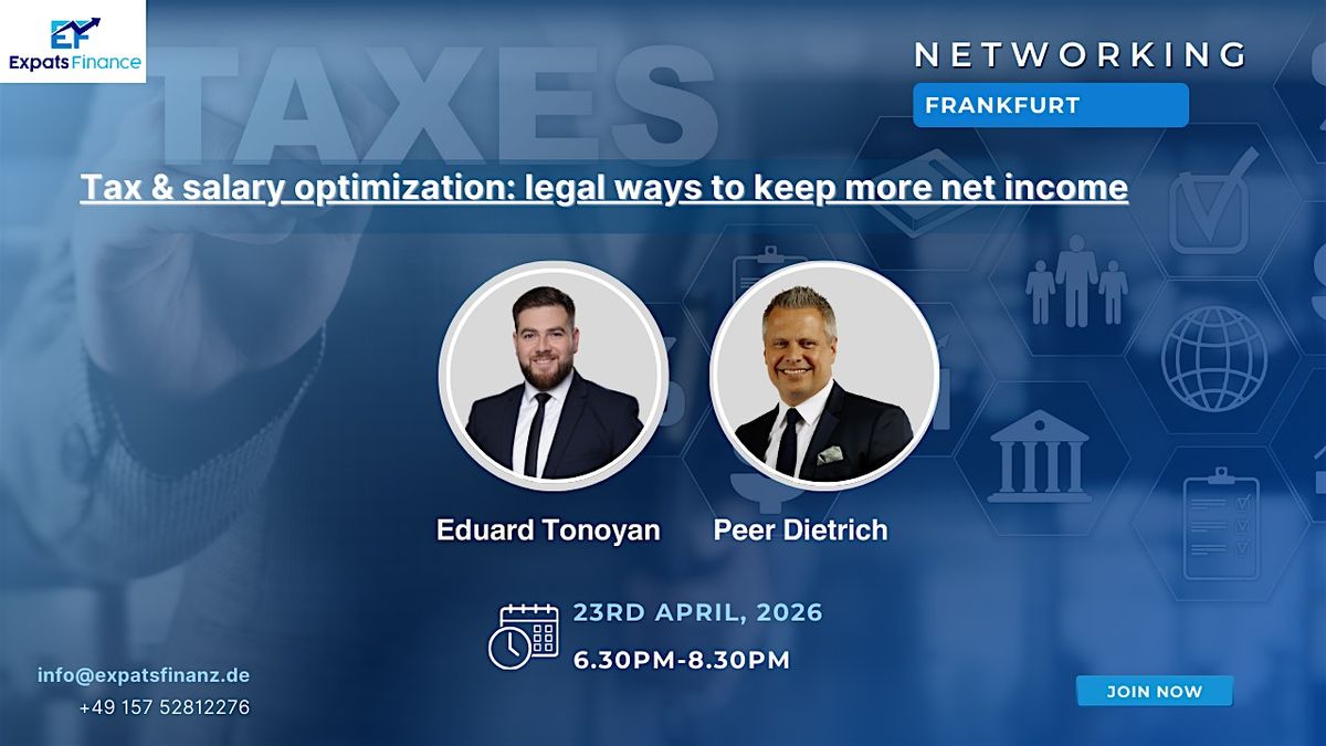 This workshop will help you understand the German tax system and show you how to legally optimize your income.