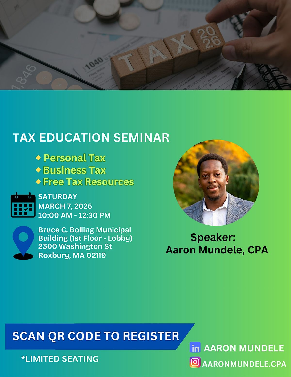Led by Aaron Mundele, CPA, a local tax professional, this session explains common tax topics in simple terms using real-life examples. Whether you are a local resident, business owner, aspiring entrepreneur, student or retiree, this event has something for everyone!