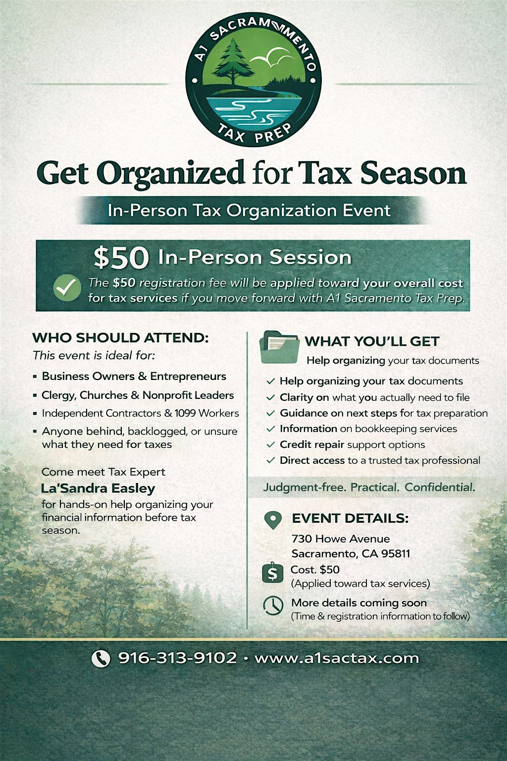 And if you choose to move forward with A1 Sacramento Tax Prep, your $50 is applied toward your tax service.