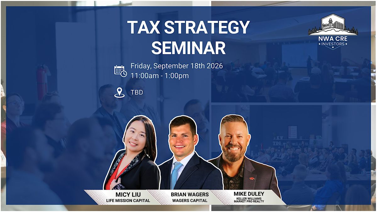 Hey there! Join us for an insightful Tax Strategy Seminar at Keller Williams Market Pro Realty on September 18, 2026 at 11:00 AM (Central Time). Learn about smart tax planning and maximize your savings. See you there!