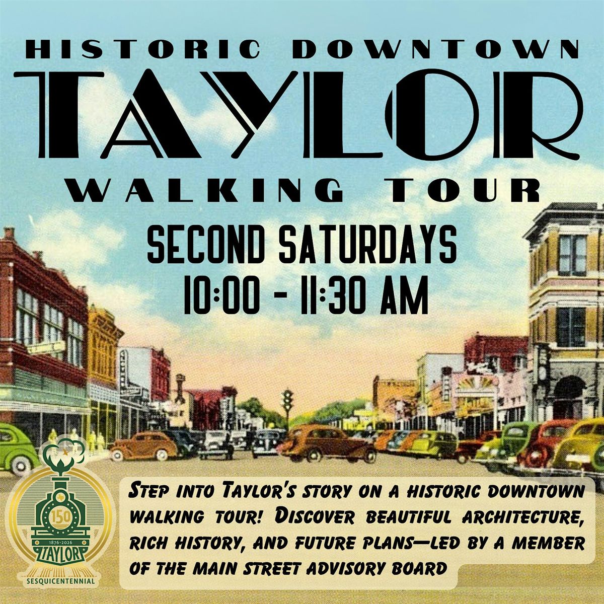Discover the charm of Taylor on a historic downtown walking tour! Explore stunning architecture, learn about our city’s rich history, and hear about the exciting revitalization efforts shaping our future. Join us for a step back in time and a glimpse of what’s to come! Tour led by a member of the Main Street Advisory Board.