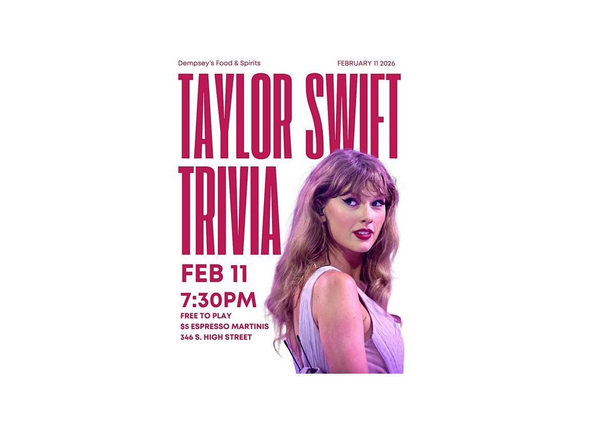 Get ready for a fun night in person celebrating all things Taylor Swift! Test your knowledge on her albums, lyrics, and iconic moments. Whether you're a Swiftie or just love a good challenge, this trivia night at Dempsey's is the place to be. Bring your friends, grab a drink, and see who knows Taylor best!