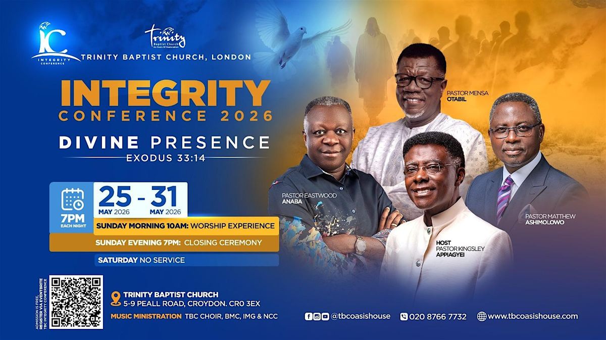 Trinity Baptist Church in London is thrilled to invite you to our highly anticipated Integrity Conference, a series of enriching evenings themed "Divine Presence" based on Exodus 33:14.
