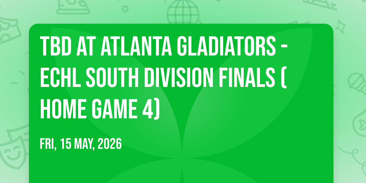 📍 Location: 33.9896, -84.0942🌟 Journey into wonder at TBD at Atlanta Gladiators - ECHL South Division Finals (Home Game 4), where extraordinary experiences await around every corner! 🏛️ Set against the backdrop of Gas South Arena in dynamic Duluth, GA, this event promises to exceed all expectations. 📅 Join us on May 15th, 2026 at 07:30 AM for a celebration that combines innovation, entertainment, and community spirit in perfect harmony. ✨ There will be an atmosphere where memories are made and stories come alive, ensuring every guest experiences something truly remarkable. 🎊 This is more than just an event; it's a journey into the extraordinary!