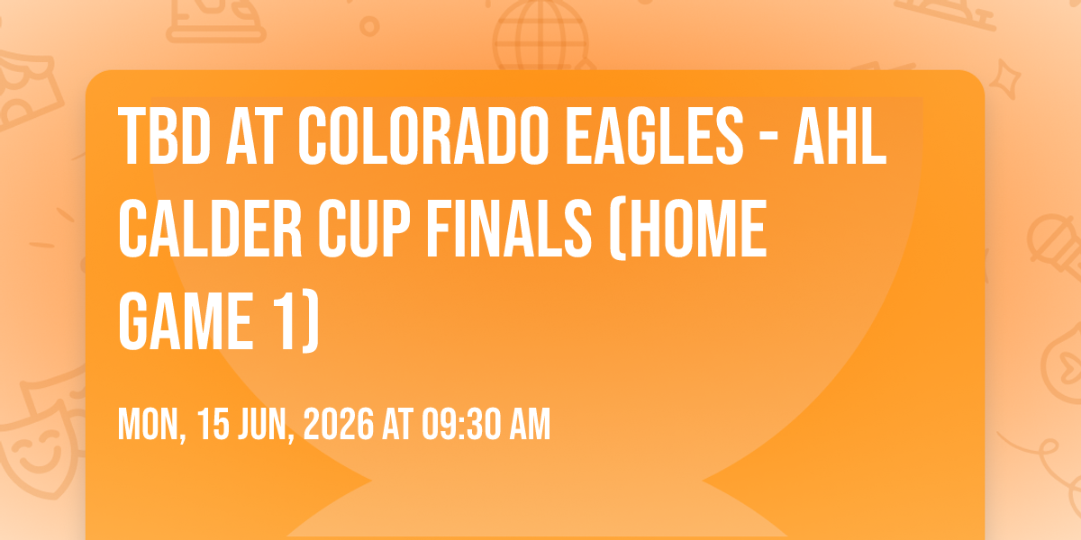 📍 Location: 40.4436, -104.99🌟 Step into a world of wonder at TBD at Colorado Eagles - AHL Calder Cup Finals (Home Game 1), where extraordinary moments await! 🏛️ Located at Blue Federal Credit Union Arena in dynamic Loveland, CO, this event will become the talk of the town. 📅 Join us on June 15th, 2026 at 09:30 AM for a celebration that defies the ordinary. ✨ This curated experience brings together the best of entertainment, culture, and community spirit. Every detail has been thoughtfully planned to ensure an unforgettable experience for all our guests. 🎯 Take advantage of this opportunity to be part of something special. 🎊 Early registration is recommended as space is limited!