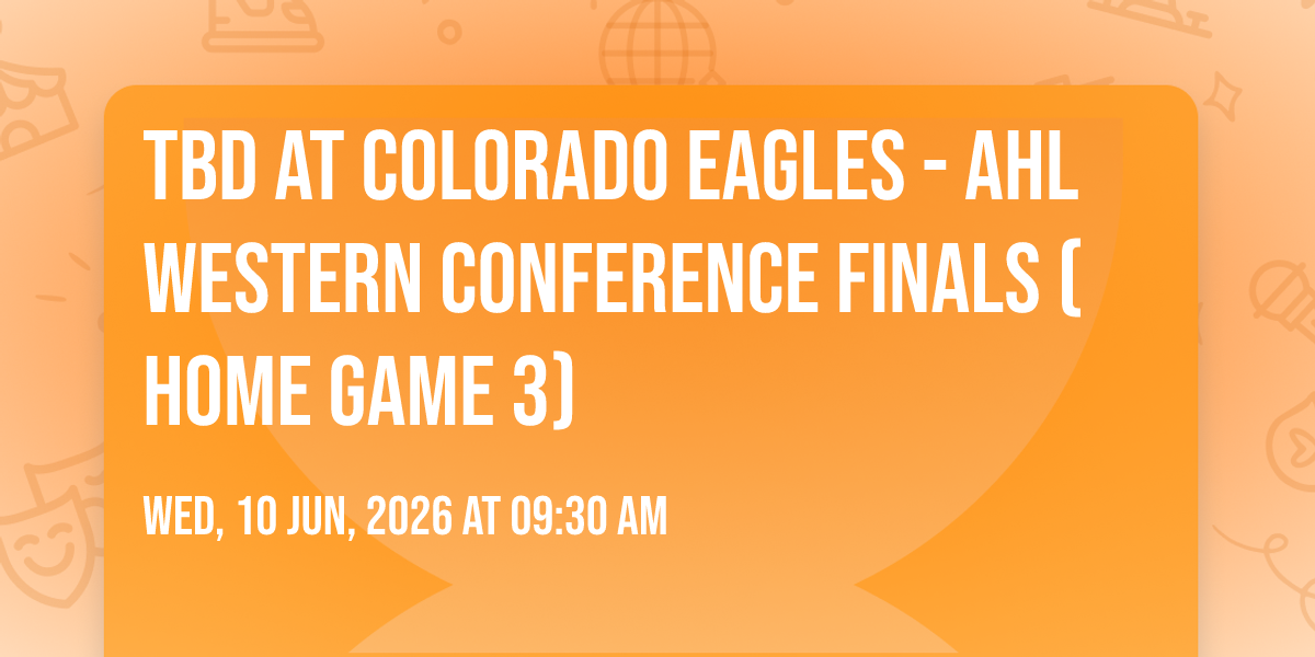 📍 Location: 40.4436, -104.99🎉 Prepare to be amazed at TBD at Colorado Eagles - AHL Western Conference Finals (Home Game 3), the most anticipated gathering of the season! 🌟 Set against the stunning backdrop of Blue Federal Credit Union Arena in vibrant Loveland, CO, this event promises to redefine your expectations. 📅 Mark your calendars for June 10th, 2026 at 09:30 AM and get ready to immerse yourself in an atmosphere of wonder and excitement. ✨ From the moment you arrive, you'll be transported into a world where memories are made and stories come alive. They have crafted an experience that perfectly harmonizes entertainment, innovation, and community spirit. 🌈 Join us as we create moments that will be discussed for years!