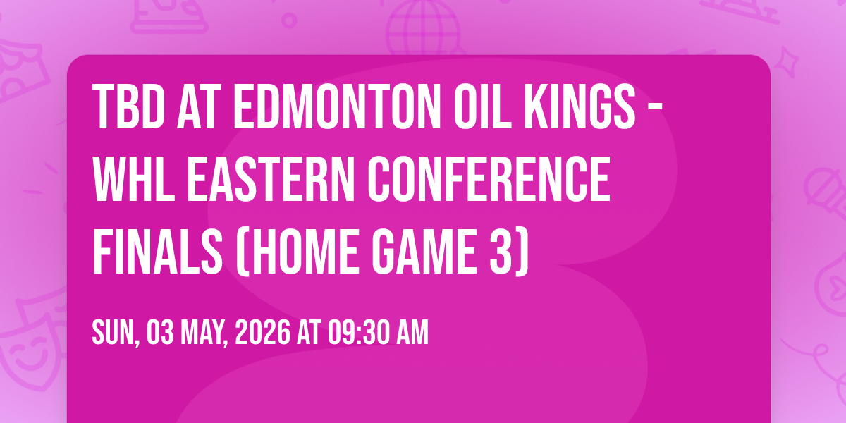 ๐ Location: 53.547, -113.498โจ Discover the extraordinary at TBD at Edmonton Oil Kings - WHL Eastern Conference Finals (Home Game 3), where magic meets reality in ways you've never imagined! ๐๏ธ Set in Rogers Place nestled in bustling Edmonton, AB, this event promises to be a landmark occasion. ๐ Taking place on May 3rd, 2026 at 09:30 AM, it's going to create an atmosphere where every moment becomes a cherished memory. ๐ Immerse yourself in an experience crafted with attention to every detail, designed to surprise and delight at every turn. They have worked tirelessly to ensure this event exceeds all expectations, bringing together elements of entertainment, innovation, and pure joy. ๐ Don't miss your chance to be part of this remarkable journey!