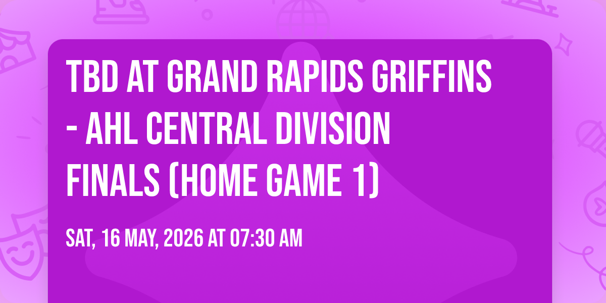 📍 Location: 42.9624, -85.6716✨ Experience the magic of TBD at Grand Rapids Griffins - AHL Central Division Finals (Home Game 1), where moments become memories that last a lifetime! 🏛️ The iconic Van Andel Arena in Grand Rapids, MI sets the perfect stage for an unforgettable celebration on May 16th, 2026 at 07:30 AM. 🌟 It's been a curated experience that brings together the best of entertainment and innovation, creating an atmosphere of wonder and excitement. From the moment you arrive, you'll be immersed in a world where the ordinary transforms into the extraordinary. 🎊 Book early to secure your place in what promises to be an event that will be talked about for years to come!