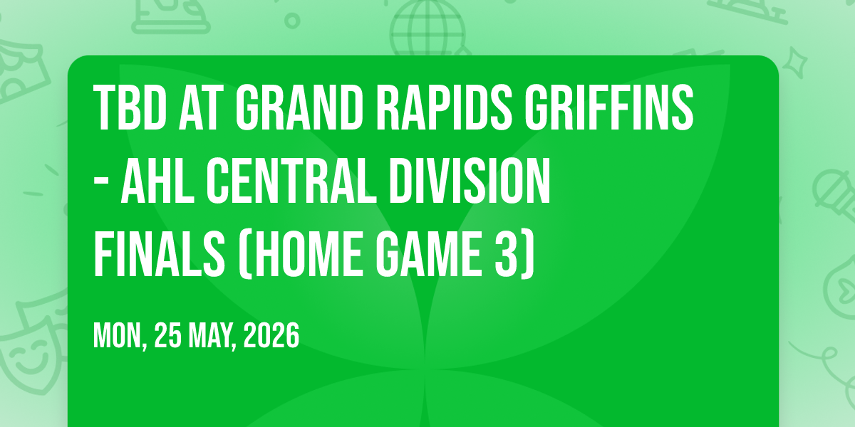 📍 Location: 42.9624, -85.6716🎉 Prepare to be amazed at TBD at Grand Rapids Griffins - AHL Central Division Finals (Home Game 3), the most anticipated gathering of the season! 🌟 Set against the stunning backdrop of Van Andel Arena in vibrant Grand Rapids, MI, this event promises to redefine your expectations. 📅 Mark your calendars for May 25th, 2026 at 07:30 AM and get ready to immerse yourself in an atmosphere of wonder and excitement. ✨ From the moment you arrive, you'll be transported into a world where memories are made and stories come alive. They have crafted an experience that perfectly harmonizes entertainment, innovation, and community spirit. 🌈 Join us as we create moments that will be discussed for years!