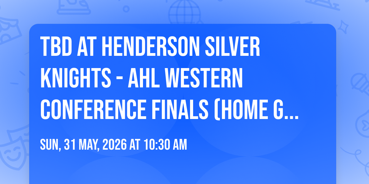 📍 Location: 36.0398, -115.193🌟 Journey into wonder at TBD at Henderson Silver Knights - AHL Western Conference Finals (Home Game 1), where extraordinary experiences await around every corner! 🏛️ Set against the backdrop of Lee's Family Forum in dynamic Henderson, NV, this event promises to exceed all expectations. 📅 Join us on May 31st, 2026 at 10:30 AM for a celebration that combines innovation, entertainment, and community spirit in perfect harmony. ✨ There will be an atmosphere where memories are made and stories come alive, ensuring every guest experiences something truly remarkable. 🎊 This is more than just an event; it's a journey into the extraordinary!