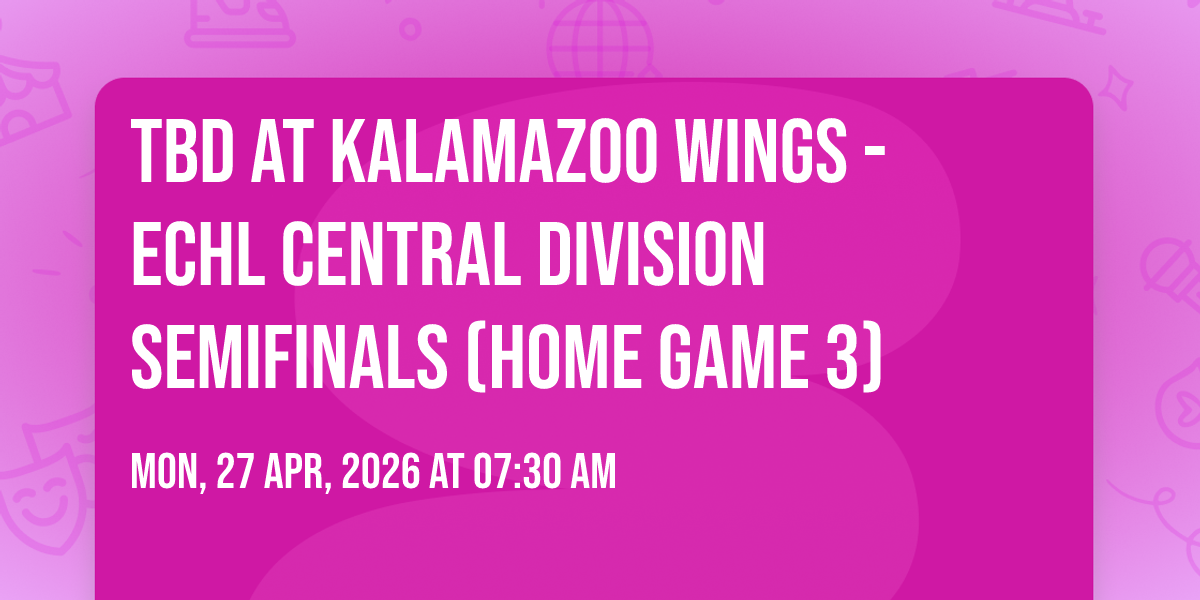 📍 Location: 42.2537, -85.5354✨ Experience the magic of TBD at Kalamazoo Wings - ECHL Central Division Semifinals (Home Game 3), where moments become memories that last a lifetime! 🏛️ The iconic Wings Event Center in Kalamazoo, MI sets the perfect stage for an unforgettable celebration on April 27th, 2026 at 07:30 AM. 🌟 It's been a curated experience that brings together the best of entertainment and innovation, creating an atmosphere of wonder and excitement. From the moment you arrive, you'll be immersed in a world where the ordinary transforms into the extraordinary. 🎊 Book early to secure your place in what promises to be an event that will be talked about for years to come!