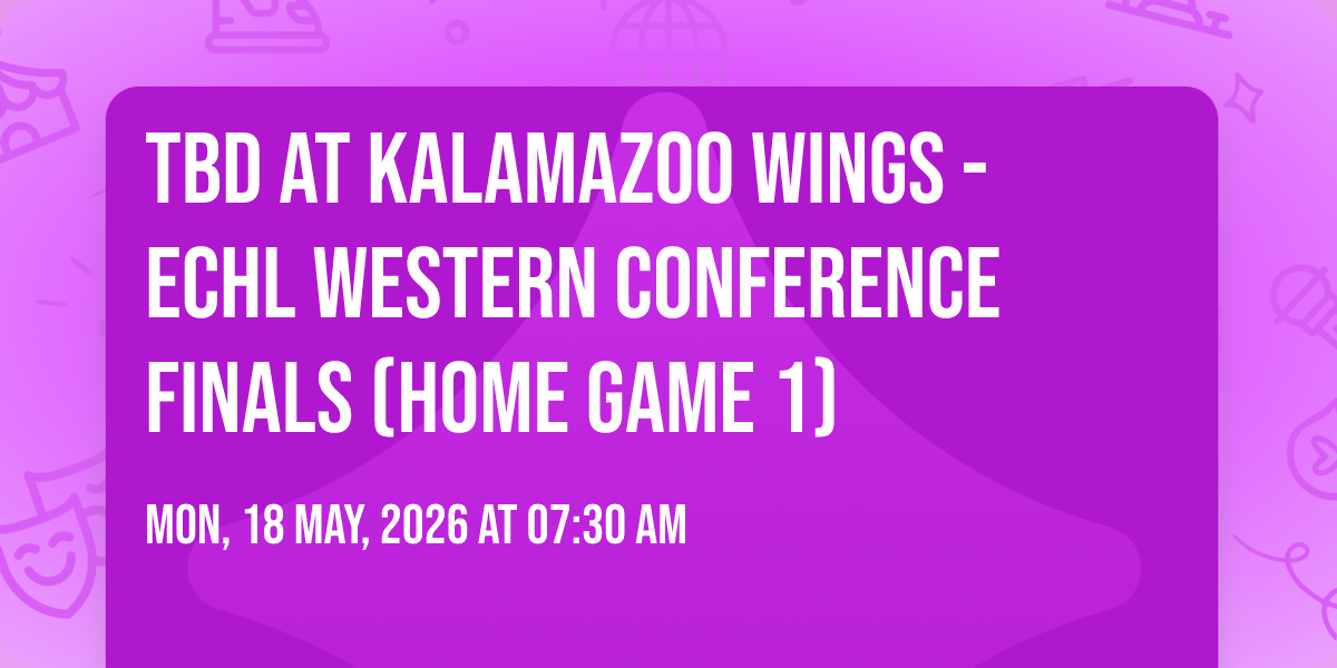 📍 Location: 42.2537, -85.5354✨ Experience the magic of TBD at Kalamazoo Wings - ECHL Western Conference Finals (Home Game 1), where moments become memories that last a lifetime! 🏛️ The iconic Wings Event Center in Kalamazoo, MI sets the perfect stage for an unforgettable celebration on May 18th, 2026 at 07:30 AM. 🌟 It's been a curated experience that brings together the best of entertainment and innovation, creating an atmosphere of wonder and excitement. From the moment you arrive, you'll be immersed in a world where the ordinary transforms into the extraordinary. 🎊 Book early to secure your place in what promises to be an event that will be talked about for years to come!