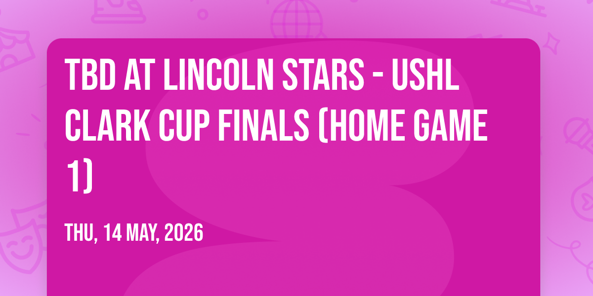 📍 Location: 40.8329, -96.6972✨ Embark on an extraordinary journey at TBD at Lincoln Stars - USHL Clark Cup Finals (Home Game 1), where every moment promises to be unforgettable! 🌟 Imagine of transforming The Ice Box in the heart of Lincoln, NE into a realm of endless possibilities. 📅 Join us on May 14th, 2026 at 08:30 AM for an experience that will challenge your imagination and exceed your expectations. 🎯 This carefully curated event combines the finest elements of entertainment, innovation, and community spirit. Whether you're an adventure seeker, culture enthusiast, or someone looking for unique experiences, this event offers something special for everyone. 🎊 Don't miss this chance to be part of something extraordinary!