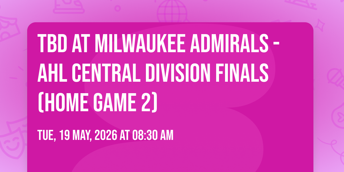 📍 Location: 43.0417, -87.9169✨ Experience the magic of TBD at Milwaukee Admirals - AHL Central Division Finals (Home Game 2), where moments become memories that last a lifetime! 🏛️ The iconic UW-Milwaukee Panther Arena in Milwaukee, WI sets the perfect stage for an unforgettable celebration on May 19th, 2026 at 08:30 AM. 🌟 It's been a curated experience that brings together the best of entertainment and innovation, creating an atmosphere of wonder and excitement. From the moment you arrive, you'll be immersed in a world where the ordinary transforms into the extraordinary. 🎊 Book early to secure your place in what promises to be an event that will be talked about for years to come!