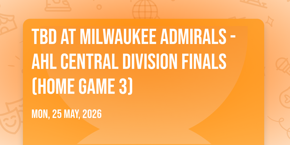 📍 Location: 43.0417, -87.9169🌟 Be part of history at TBD at Milwaukee Admirals - AHL Central Division Finals (Home Game 3), an extraordinary gathering that will captivate your imagination! 🏛️ The prestigious UW-Milwaukee Panther Arena in Milwaukee, WI sets the stage for an unforgettable experience on May 25th, 2026 at 08:30 AM. ✨ They are bringing together the finest elements of entertainment and innovation to create moments that will take your breath away. From the moment you arrive, you'll be immersed in an atmosphere of wonder and excitement. 🎯 This carefully planned event ensures every guest experiences something truly special. 🎊 Early booking is recommended for this must-attend event of the season!