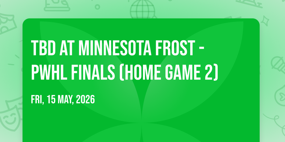 📍 Location: 44.9448, -93.1011✨ Experience the magic of TBD at Minnesota Frost - PWHL Finals (Home Game 2), where moments become memories that last a lifetime! 🏛️ The iconic Grand Casino Arena in Saint Paul, MN sets the perfect stage for an unforgettable celebration on May 15th, 2026 at 08:30 AM. 🌟 It's been a curated experience that brings together the best of entertainment and innovation, creating an atmosphere of wonder and excitement. From the moment you arrive, you'll be immersed in a world where the ordinary transforms into the extraordinary. 🎊 Book early to secure your place in what promises to be an event that will be talked about for years to come!