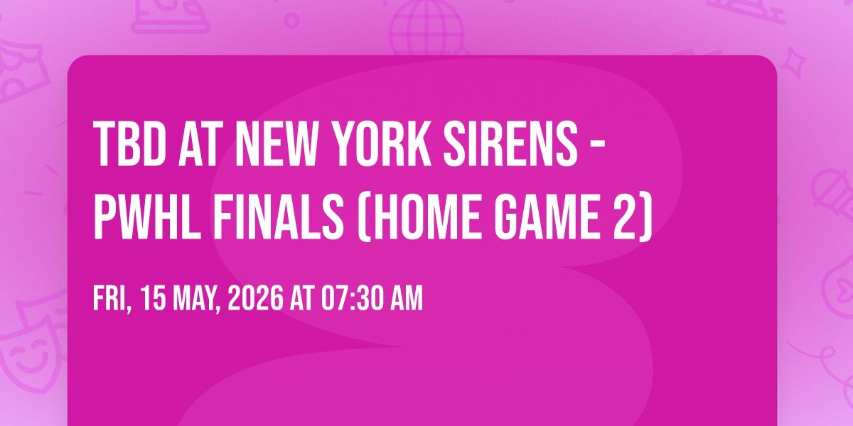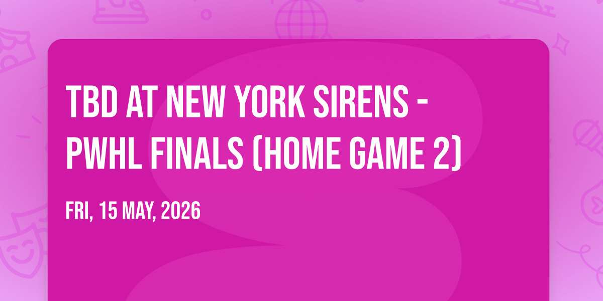 📍 Location: 40.7332, -74.1717✨ Embark on an extraordinary journey at TBD at New York Sirens - PWHL Finals (Home Game 2), where every moment promises to be unforgettable! 🌟 Imagine of transforming Prudential Center in the heart of Newark, NJ into a realm of endless possibilities. 📅 Join us on May 15th, 2026 at 07:30 AM for an experience that will challenge your imagination and exceed your expectations. 🎯 This carefully curated event combines the finest elements of entertainment, innovation, and community spirit. Whether you're an adventure seeker, culture enthusiast, or someone looking for unique experiences, this event offers something special for everyone. 🎊 Don't miss this chance to be part of something extraordinary!