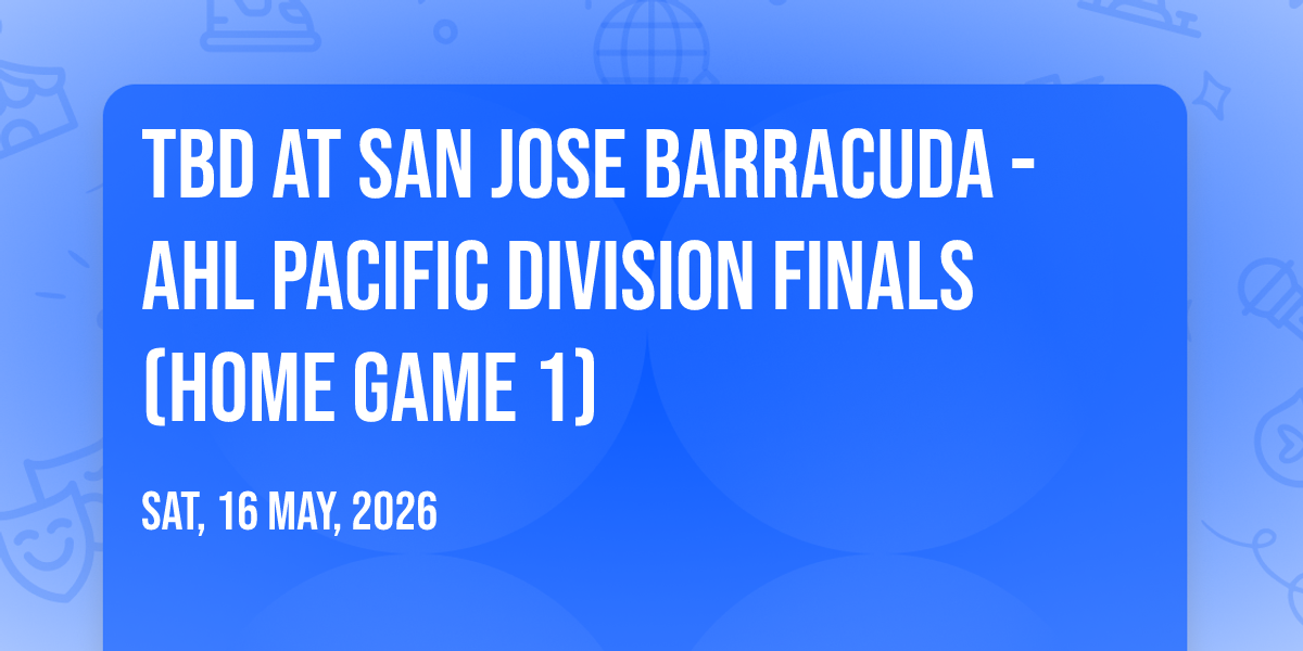 📍 Location: 37.3184, -121.863🌟 Be part of history at TBD at San Jose Barracuda - AHL Pacific Division Finals (Home Game 1), an extraordinary gathering that will captivate your imagination! 🏛️ The prestigious Tech CU Arena in San Jose, CA sets the stage for an unforgettable experience on May 16th, 2026 at 10:30 AM. ✨ They are bringing together the finest elements of entertainment and innovation to create moments that will take your breath away. From the moment you arrive, you'll be immersed in an atmosphere of wonder and excitement. 🎯 This carefully planned event ensures every guest experiences something truly special. 🎊 Early booking is recommended for this must-attend event of the season!