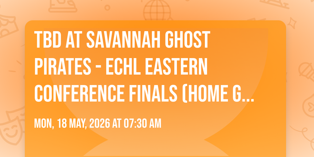 📍 Location: 32.0741, -81.1116🎉 Welcome to TBD at Savannah Ghost Pirates - ECHL Eastern Conference Finals (Home Game 1), where the impossible becomes possible and dreams take flight! 🏛️ Join us at Enmarket Arena in the heart of Savannah, GA for an event that will redefine your expectations. 📅 On May 18th, 2026 at 07:30 AM, witness the transformation of space and time into something truly magical. ✨ It's a curated experience combining the best of innovation, entertainment, and community spirit, creating moments that will be remembered for years to come. Whether you're a first-time visitor or a seasoned enthusiast, prepare to be amazed. 🎊 Book now to ensure your place in this unforgettable experience!