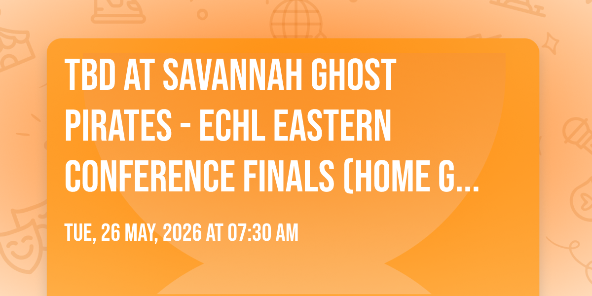 π Location: 32.0741, -81.1116π Step into a world of wonder at TBD at Savannah Ghost Pirates - ECHL Eastern Conference Finals (Home Game 3), where extraordinary moments await! ποΈ Located at Enmarket Arena in dynamic Savannah, GA, this event will become the talk of the town. π Join us on May 26th, 2026 at 07:30 AM for a celebration that defies the ordinary. β¨ This curated experience brings together the best of entertainment, culture, and community spirit. Every detail has been thoughtfully planned to ensure an unforgettable experience for all our guests. π― Take advantage of this opportunity to be part of something special. π Early registration is recommended as space is limited!