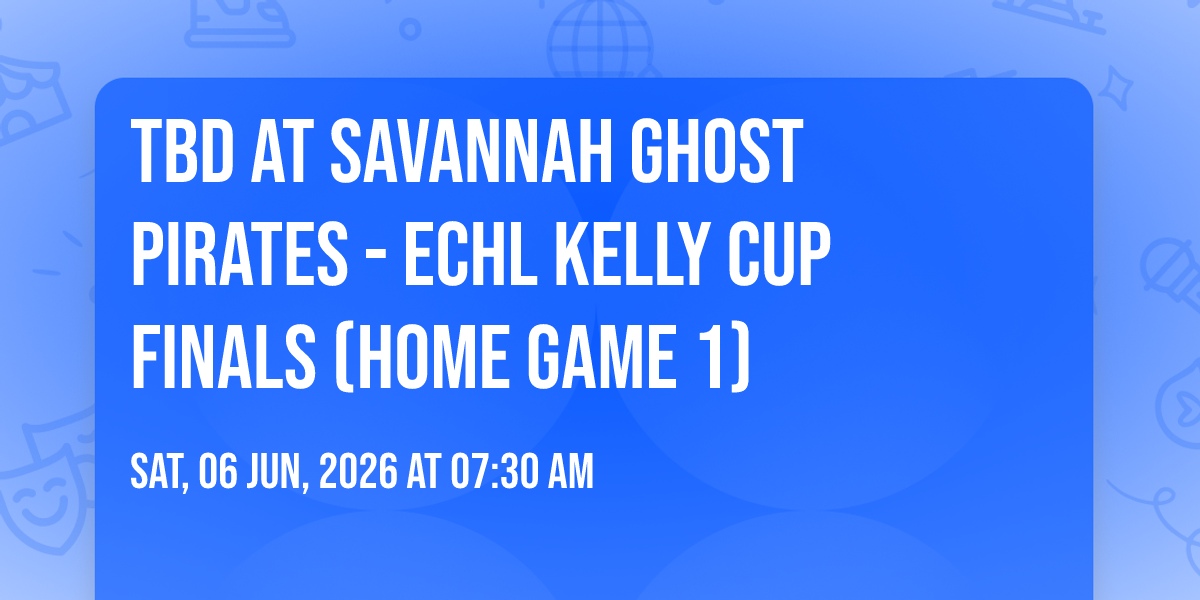 📍 Location: 32.0741, -81.1116🌟 Step into a world of wonder at TBD at Savannah Ghost Pirates - ECHL Kelly Cup Finals (Home Game 1), where extraordinary moments await! 🏛️ Located at Enmarket Arena in dynamic Savannah, GA, this event will become the talk of the town. 📅 Join us on June 6th, 2026 at 07:30 AM for a celebration that defies the ordinary. ✨ This curated experience brings together the best of entertainment, culture, and community spirit. Every detail has been thoughtfully planned to ensure an unforgettable experience for all our guests. 🎯 Take advantage of this opportunity to be part of something special. 🎊 Early registration is recommended as space is limited!