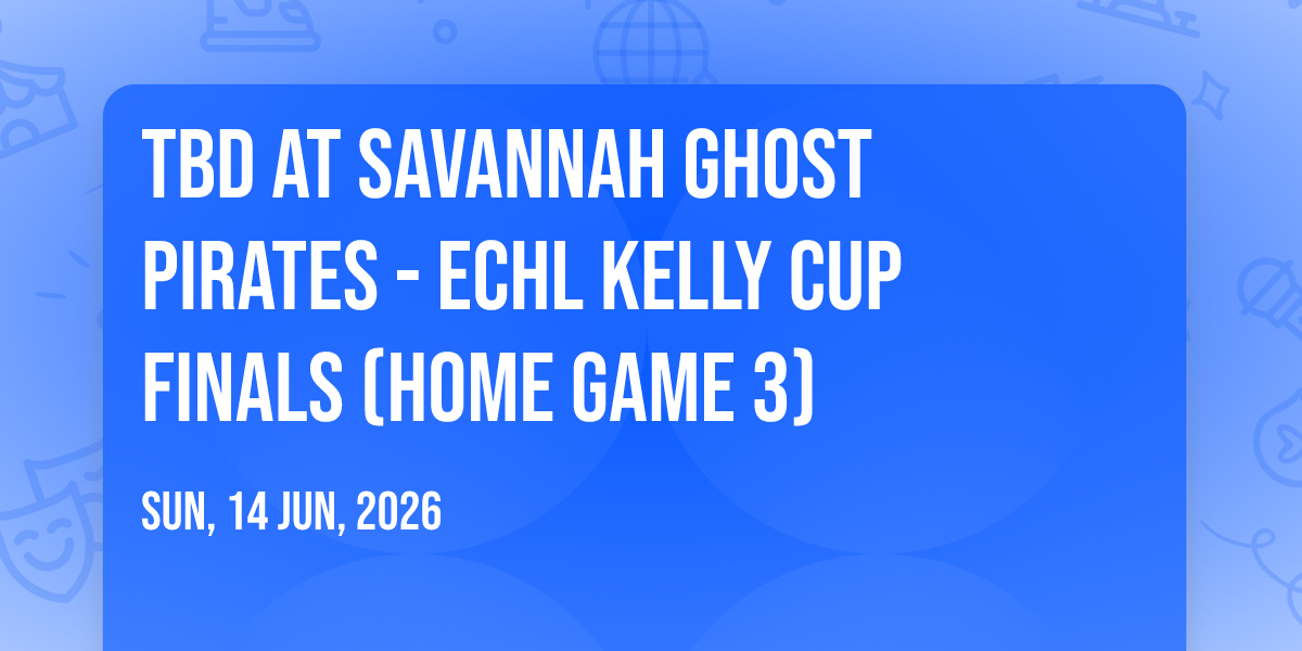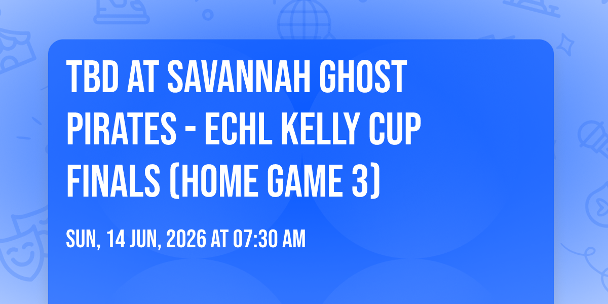📍 Location: 32.0741, -81.1116✨ Experience the magic of TBD at Savannah Ghost Pirates - ECHL Kelly Cup Finals (Home Game 3), where moments become memories that last a lifetime! 🏛️ The iconic Enmarket Arena in Savannah, GA sets the perfect stage for an unforgettable celebration on June 14th, 2026 at 07:30 AM. 🌟 It's been a curated experience that brings together the best of entertainment and innovation, creating an atmosphere of wonder and excitement. From the moment you arrive, you'll be immersed in a world where the ordinary transforms into the extraordinary. 🎊 Book early to secure your place in what promises to be an event that will be talked about for years to come!