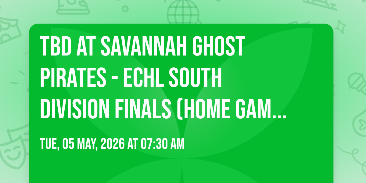 📍 Location: 32.0741, -81.1116🌟 Journey into wonder at TBD at Savannah Ghost Pirates - ECHL South Division Finals (Home Game 1), where extraordinary experiences await around every corner! 🏛️ Set against the backdrop of Enmarket Arena in dynamic Savannah, GA, this event promises to exceed all expectations. 📅 Join us on May 5th, 2026 at 07:30 AM for a celebration that combines innovation, entertainment, and community spirit in perfect harmony. ✨ There will be an atmosphere where memories are made and stories come alive, ensuring every guest experiences something truly remarkable. 🎊 This is more than just an event; it's a journey into the extraordinary!