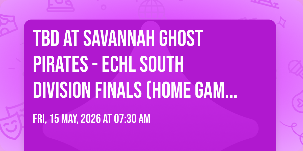 📍 Location: 32.0741, -81.1116✨ Embark on an extraordinary journey at TBD at Savannah Ghost Pirates - ECHL South Division Finals (Home Game 4), where every moment promises to be unforgettable! 🌟 Imagine of transforming Enmarket Arena in the heart of Savannah, GA into a realm of endless possibilities. 📅 Join us on May 15th, 2026 at 07:30 AM for an experience that will challenge your imagination and exceed your expectations. 🎯 This carefully curated event combines the finest elements of entertainment, innovation, and community spirit. Whether you're an adventure seeker, culture enthusiast, or someone looking for unique experiences, this event offers something special for everyone. 🎊 Don't miss this chance to be part of something extraordinary!