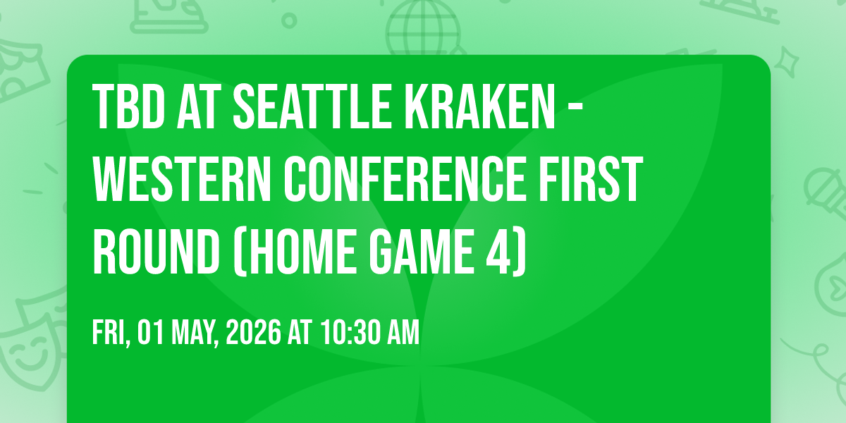 📍 Location: 47.6221, -122.354🎉 Welcome to TBD at Seattle Kraken - Western Conference First Round (Home Game 4), where dreams come alive and possibilities are endless! 🏛️ Join us at Climate Pledge Arena in the heart of Seattle, WA for an event that defies expectations. 📅 On May 1st, 2026 at 10:30 AM, be part of something truly extraordinary as we bring together innovation, entertainment, and pure magic. ✨ Every aspect has been carefully designed to ensure an unforgettable experience for all our guests. Whether you're seeking adventure, inspiration, or simply a break from the ordinary, this event promises to deliver beyond your wildest dreams. 🎊 Prepare for a journey into the extraordinary!