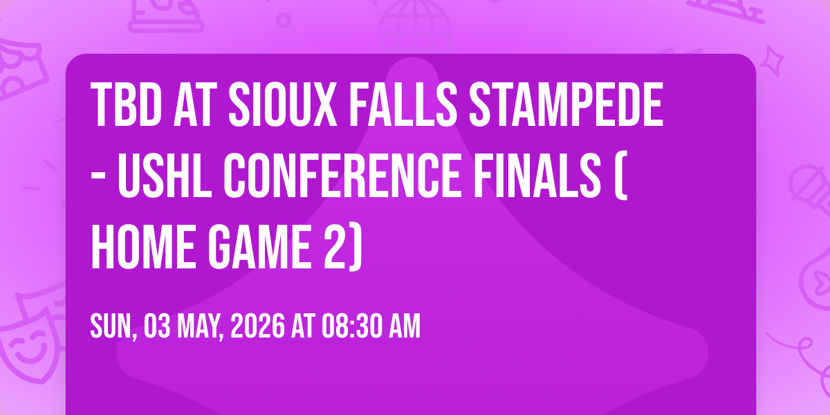 📍 Location: 43.5635, -96.747🎉 Prepare to be amazed at TBD at Sioux Falls Stampede - USHL Conference Finals (Home Game 2), the most anticipated gathering of the season! 🌟 Set against the stunning backdrop of Denny Sanford Premier Center in vibrant Sioux Falls, SD, this event promises to redefine your expectations. 📅 Mark your calendars for May 3rd, 2026 at 08:30 AM and get ready to immerse yourself in an atmosphere of wonder and excitement. ✨ From the moment you arrive, you'll be transported into a world where memories are made and stories come alive. They have crafted an experience that perfectly harmonizes entertainment, innovation, and community spirit. 🌈 Join us as we create moments that will be discussed for years!