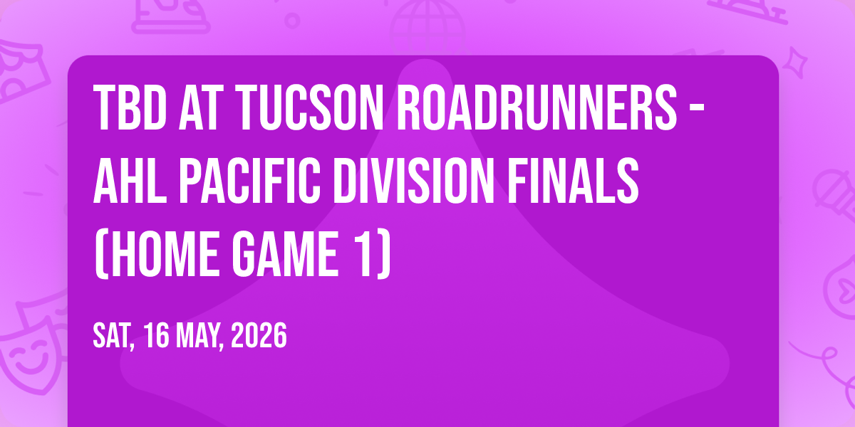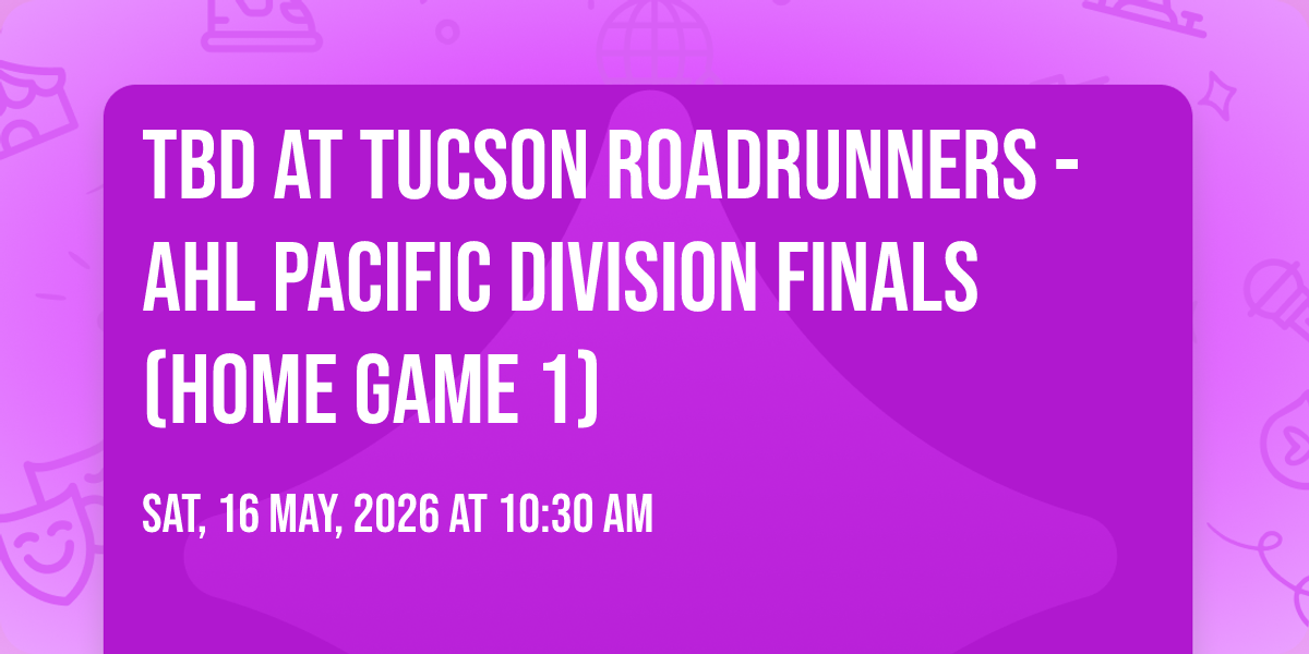 📍 Location: 32.2188, -110.973✨ Experience the magic of TBD at Tucson Roadrunners - AHL Pacific Division Finals (Home Game 1), where moments become memories that last a lifetime! 🏛️ The iconic Tucson Arena in Tucson, AZ sets the perfect stage for an unforgettable celebration on May 16th, 2026 at 10:30 AM. 🌟 It's been a curated experience that brings together the best of entertainment and innovation, creating an atmosphere of wonder and excitement. From the moment you arrive, you'll be immersed in a world where the ordinary transforms into the extraordinary. 🎊 Book early to secure your place in what promises to be an event that will be talked about for years to come!