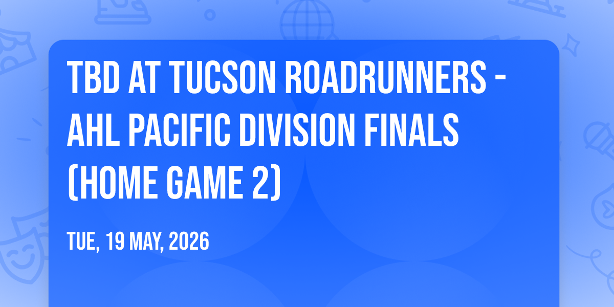 📍 Location: 32.2188, -110.973🌟 Journey into wonder at TBD at Tucson Roadrunners - AHL Pacific Division Finals (Home Game 2), where extraordinary experiences await around every corner! 🏛️ Set against the backdrop of Tucson Arena in dynamic Tucson, AZ, this event promises to exceed all expectations. 📅 Join us on May 19th, 2026 at 10:30 AM for a celebration that combines innovation, entertainment, and community spirit in perfect harmony. ✨ There will be an atmosphere where memories are made and stories come alive, ensuring every guest experiences something truly remarkable. 🎊 This is more than just an event; it's a journey into the extraordinary!