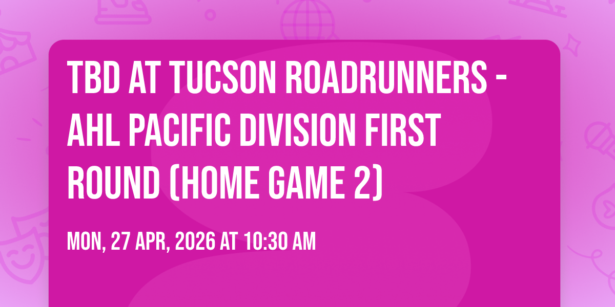 π Location: 32.2188, -110.973β¨ Discover the extraordinary at TBD at Tucson Roadrunners - AHL Pacific Division First Round (Home Game 2), where magic meets reality in ways you've never imagined! ποΈ Set in Tucson Arena nestled in bustling Tucson, AZ, this event promises to be a landmark occasion. π Taking place on April 27th, 2026 at 10:30 AM, it's going to create an atmosphere where every moment becomes a cherished memory. π Immerse yourself in an experience crafted with attention to every detail, designed to surprise and delight at every turn. They have worked tirelessly to ensure this event exceeds all expectations, bringing together elements of entertainment, innovation, and pure joy. π Don't miss your chance to be part of this remarkable journey!
