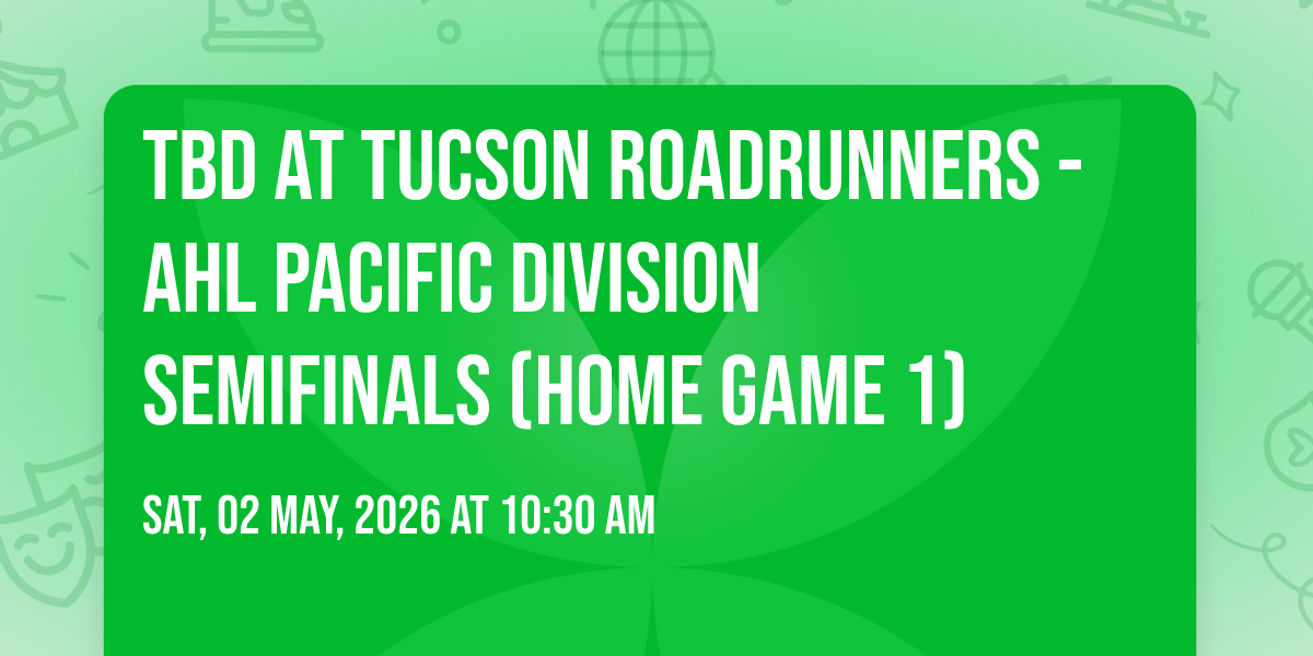 π Location: 32.2188, -110.973β¨ Experience the magic of TBD at Tucson Roadrunners - AHL Pacific Division Semifinals (Home Game 1), where moments become memories that last a lifetime! ποΈ The iconic Tucson Arena in Tucson, AZ sets the perfect stage for an unforgettable celebration on May 2nd, 2026 at 10:30 AM. π It's been a curated experience that brings together the best of entertainment and innovation, creating an atmosphere of wonder and excitement. From the moment you arrive, you'll be immersed in a world where the ordinary transforms into the extraordinary. π Book early to secure your place in what promises to be an event that will be talked about for years to come!