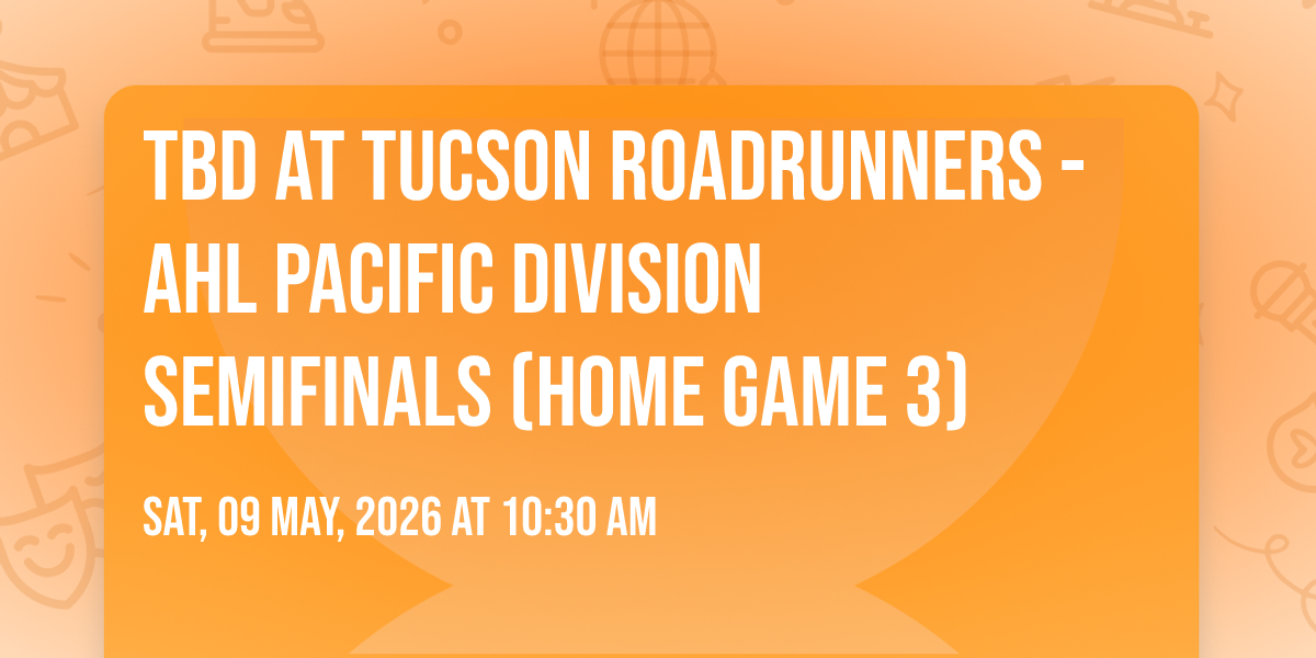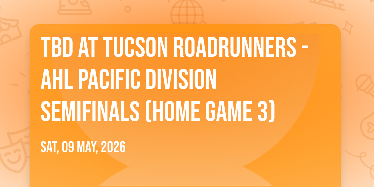 ๐ Location: 32.2188, -110.973๐ Prepare to be amazed at TBD at Tucson Roadrunners - AHL Pacific Division Semifinals (Home Game 3), the most anticipated gathering of the season! ๐ Set against the stunning backdrop of Tucson Arena in vibrant Tucson, AZ, this event promises to redefine your expectations. ๐ Mark your calendars for May 9th, 2026 at 10:30 AM and get ready to immerse yourself in an atmosphere of wonder and excitement. โจ From the moment you arrive, you'll be transported into a world where memories are made and stories come alive. They have crafted an experience that perfectly harmonizes entertainment, innovation, and community spirit. ๐ Join us as we create moments that will be discussed for years!