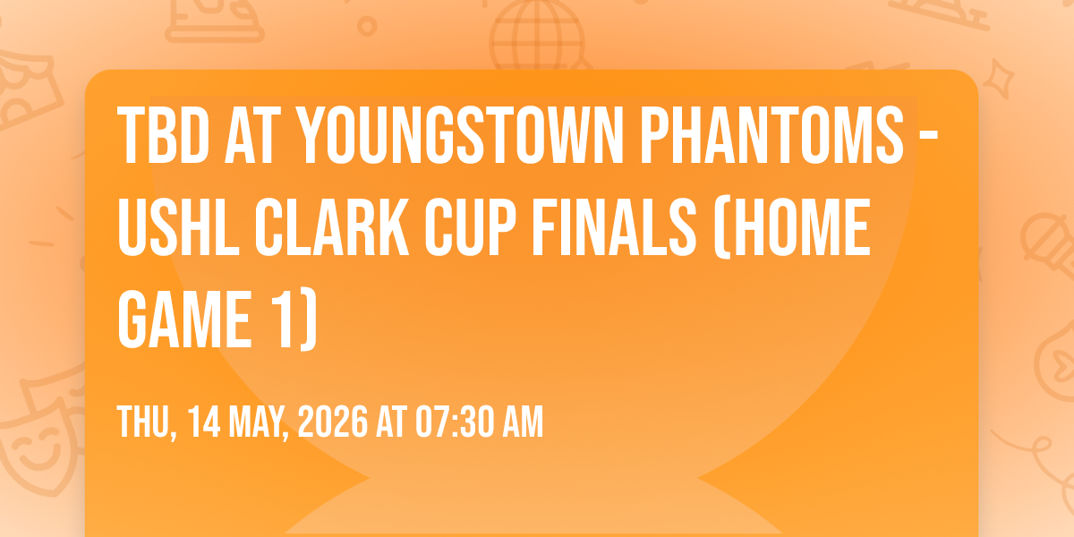 📍 Location: 41.0962, -80.6479✨ Discover the extraordinary at TBD at Youngstown Phantoms - USHL Clark Cup Finals (Home Game 1), where magic meets reality in ways you've never imagined! 🏛️ Set in Covelli Centre nestled in bustling Youngstown, OH, this event promises to be a landmark occasion. 📅 Taking place on May 14th, 2026 at 07:30 AM, it's going to create an atmosphere where every moment becomes a cherished memory. 🌟 Immerse yourself in an experience crafted with attention to every detail, designed to surprise and delight at every turn. They have worked tirelessly to ensure this event exceeds all expectations, bringing together elements of entertainment, innovation, and pure joy. 🎊 Don't miss your chance to be part of this remarkable journey!