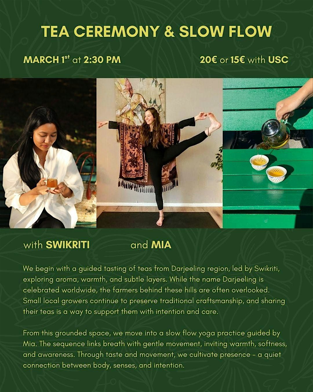 From this grounded space, we move into a 1-hour slow flow yoga practice guided by Mia. The sequence links breath with gentle movement, inviting warmth, softness, and awareness. Through taste and movement, we cultivate presence - a quiet connection between body, senses, and intention.