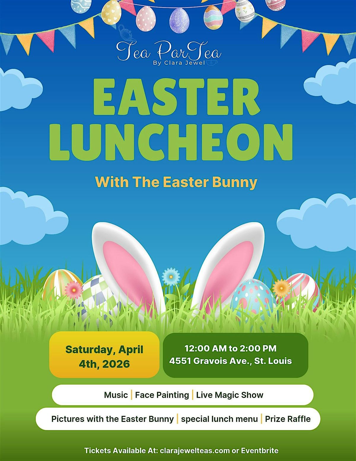Hippity Hop into our first-ever Tea ParTea Easter Luncheon Mark your calendar for Sunday, April 4th from 12 PM to 3 PM.