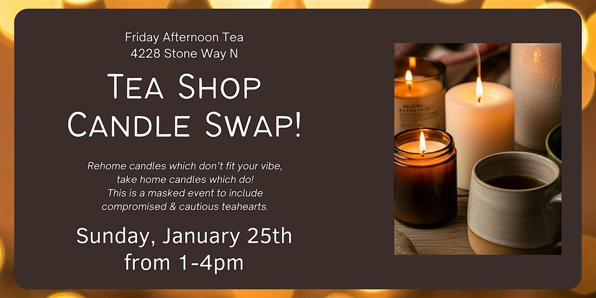 Rehome candles which don’t fit your vibe, take home candles which do!This is a masked event to include compromised & cautious teahearts.