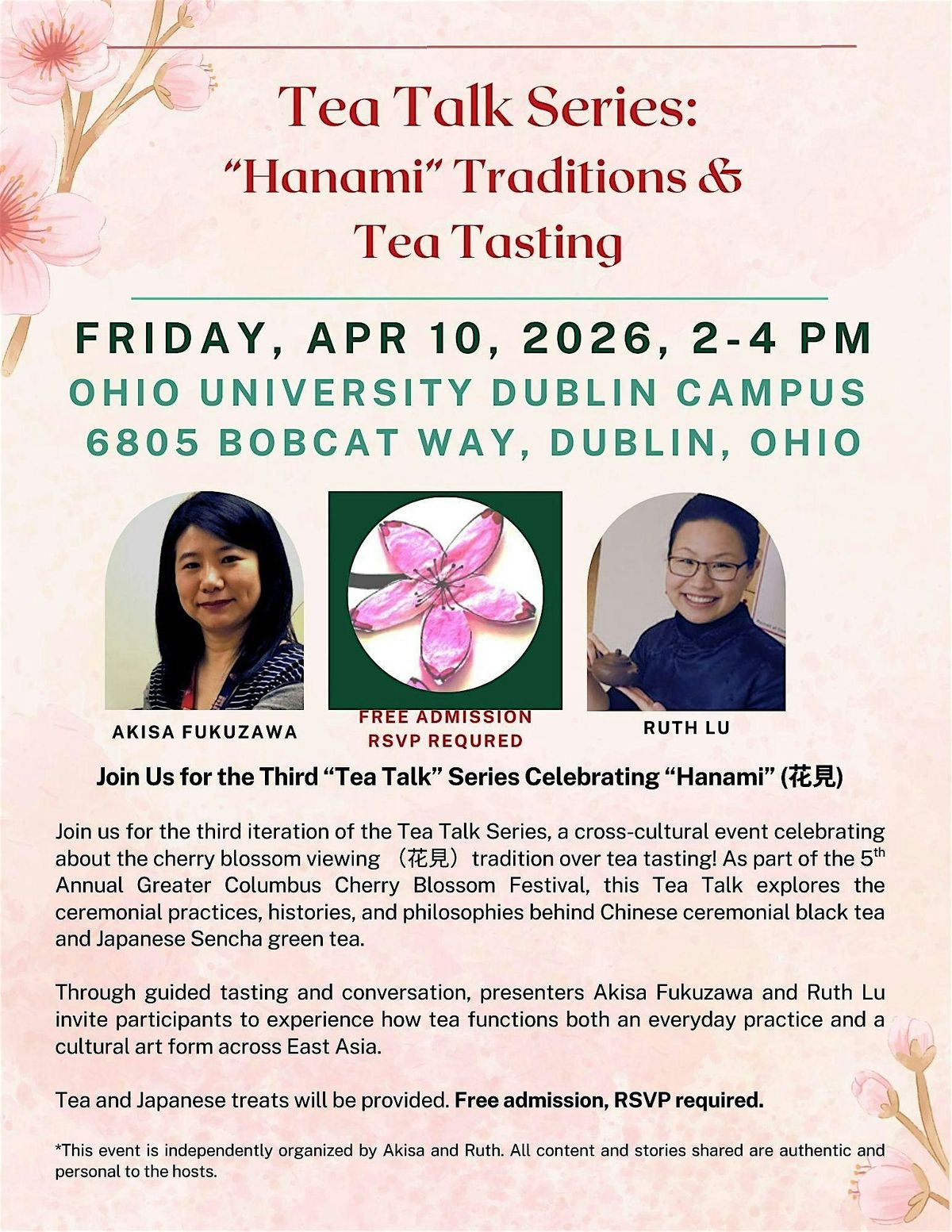 Join us for the third iteration of the Tea Talk Series, a cross-cultural event celebrating about the cherry blossom viewing (花見)tradition over tea tasting! As part of the 5th Annual Greater Columbus Cherry Blossom Festival, this Tea Talk explores the ceremonial practices, histories, and philosophies behind Chinese ceremonial black tea and Japanese Sencha green tea.