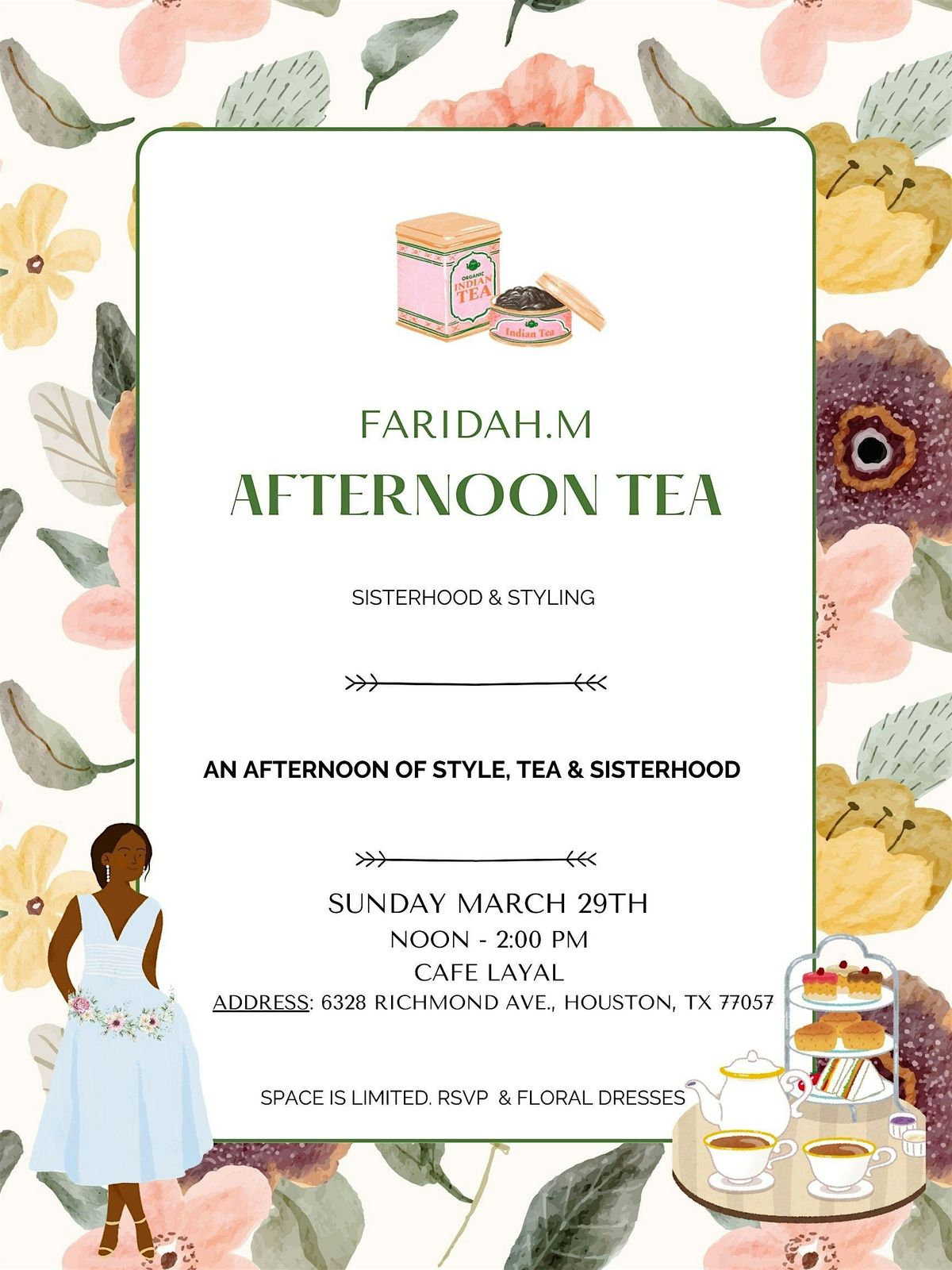 Join Faridah M for stylish vibes and tasty tea for the perfect afternoon hangout.About this Event