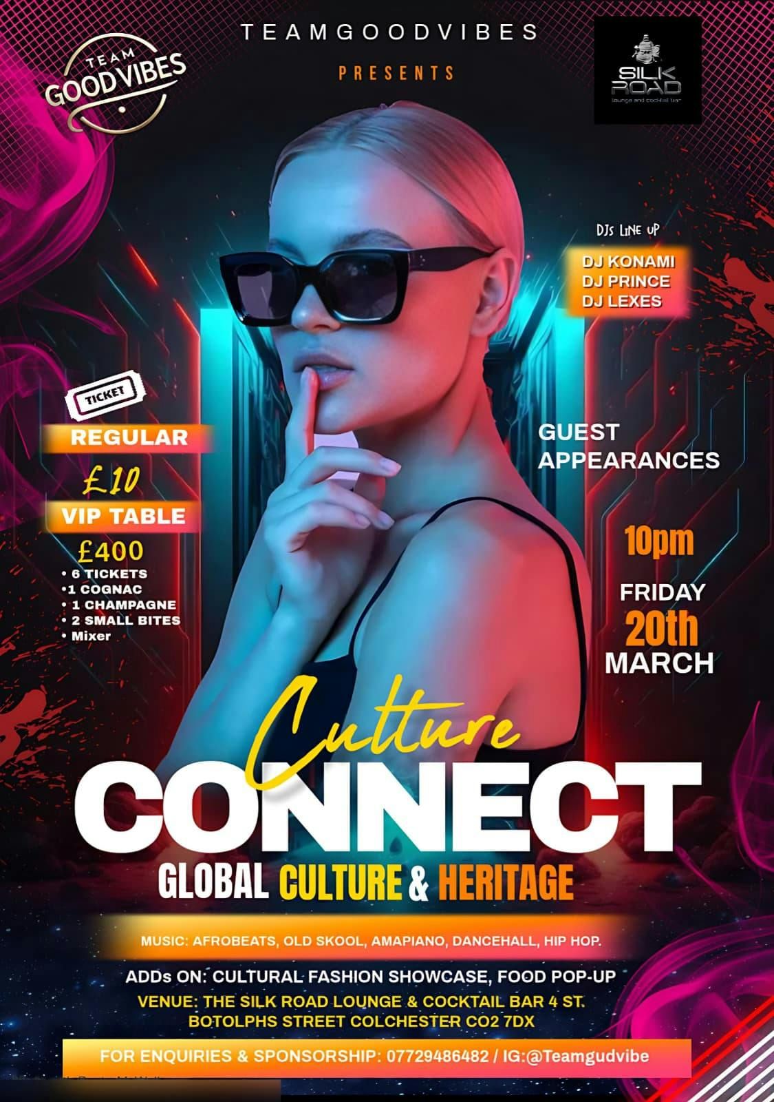 Culture Connect by TeamGoodVibes is a night where sound, style, and stories collide. Bringing together diverse rhythms, global influences, and local energy, this show celebrates culture through music, movement, and shared vibes. Expect an immersive experience that connects people across backgrounds—one beat, one dancefloor, one good vibe at a time.Disclaimer: