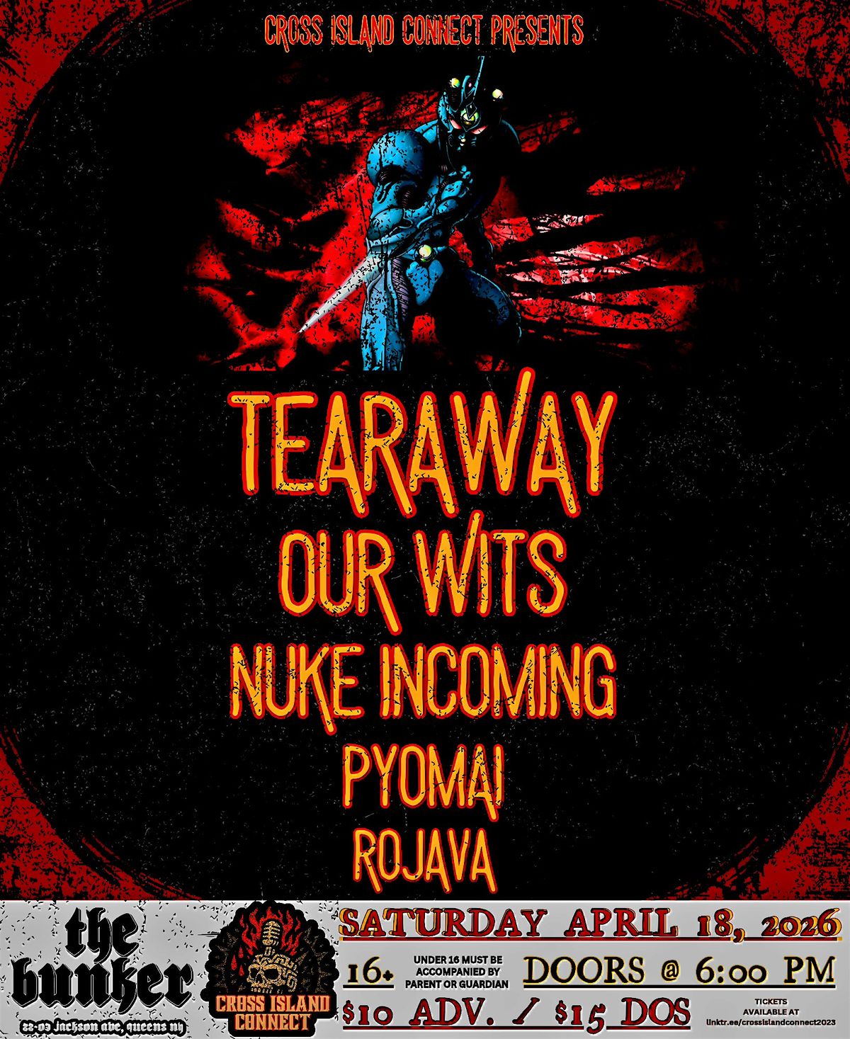 SKRAMZ, POST HARDCORE + EMOTIONAL METALCORE AT THE BUNKER w/TEARAWAY, OUR WITS, NUKE INCOMING, PYOMAI, & ROJAVAAbout this Event
