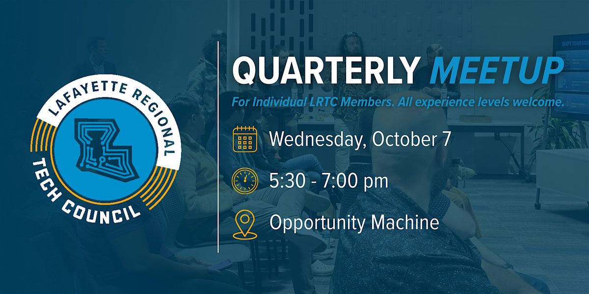 The Lafayette Regional Tech Council invites individual tech practitioners to our quarterly meetup - designed to connect Lafayette's tech professionals through genuine networking and knowledge sharing.